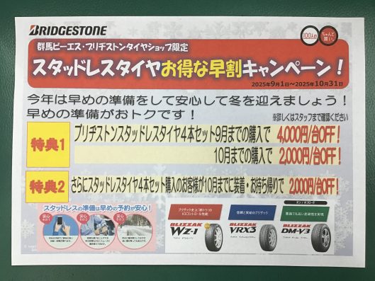 スタッドレス早割キャンペーンについてご案内します!