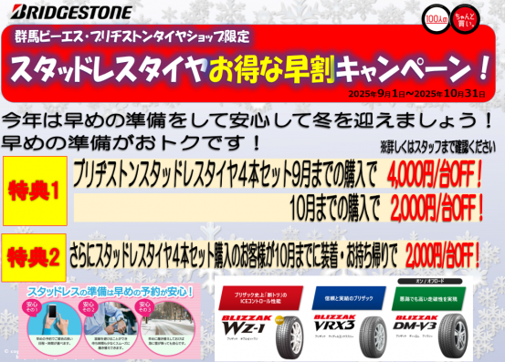 【ブリヂストン冬用タイヤ 早得キャンペーン】