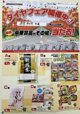 10/25(土)~11/30(日)までブリヂストンタイヤ4本ご購入のお客様を対象に